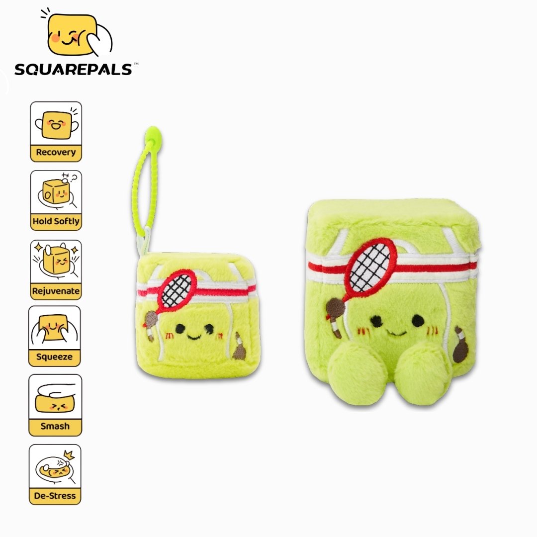 • 1 x SquarePals Tennis Squishy Plushie Keychain & Bag Charm (7cm x 7cm)